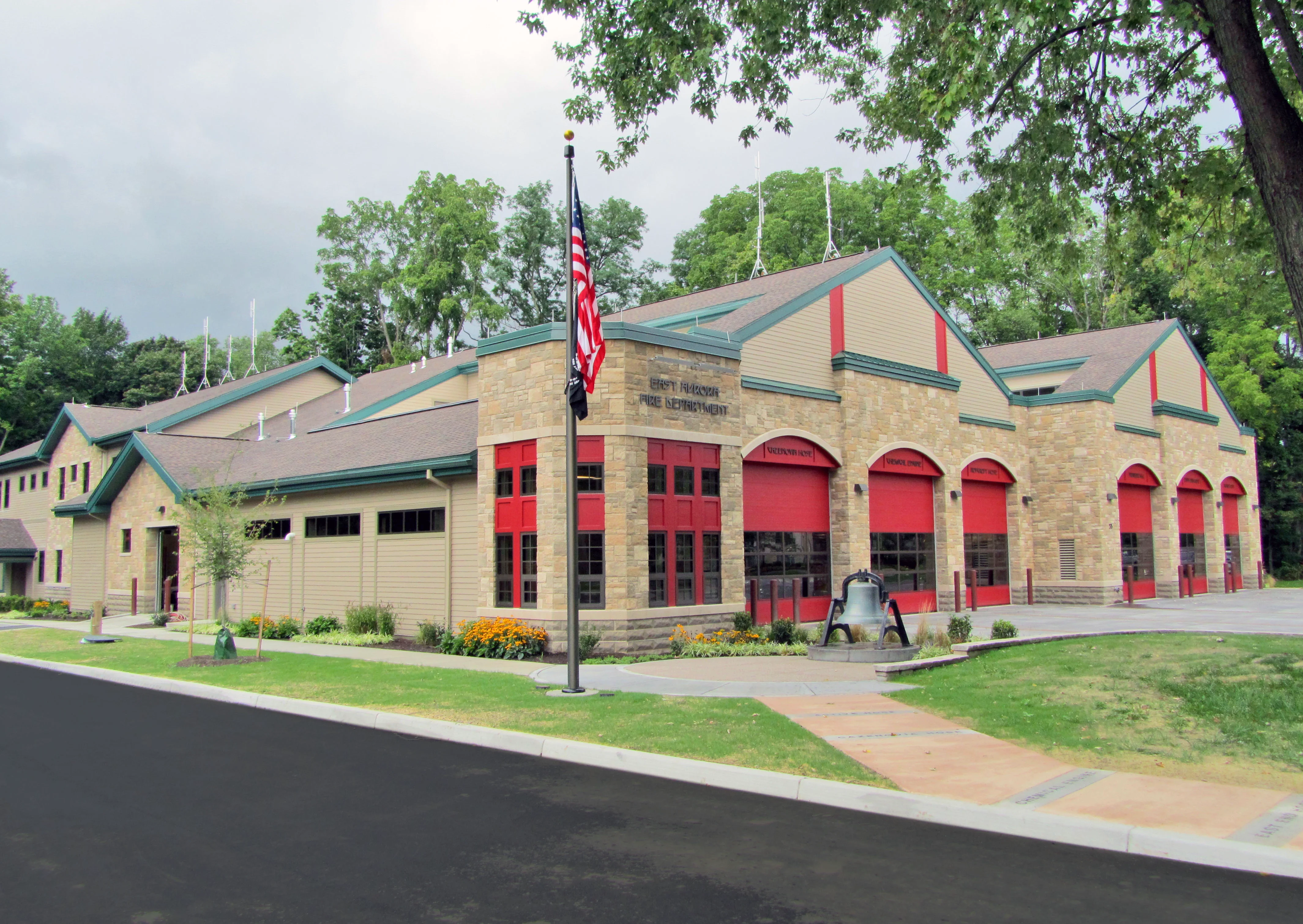 This twenty-two thousand square foot building has two stories and includes administration and living quarters and connected apparatus bay.
